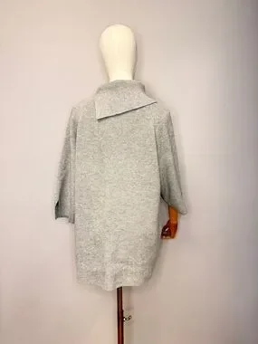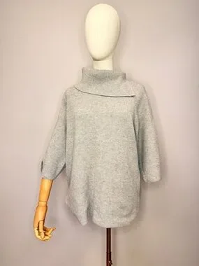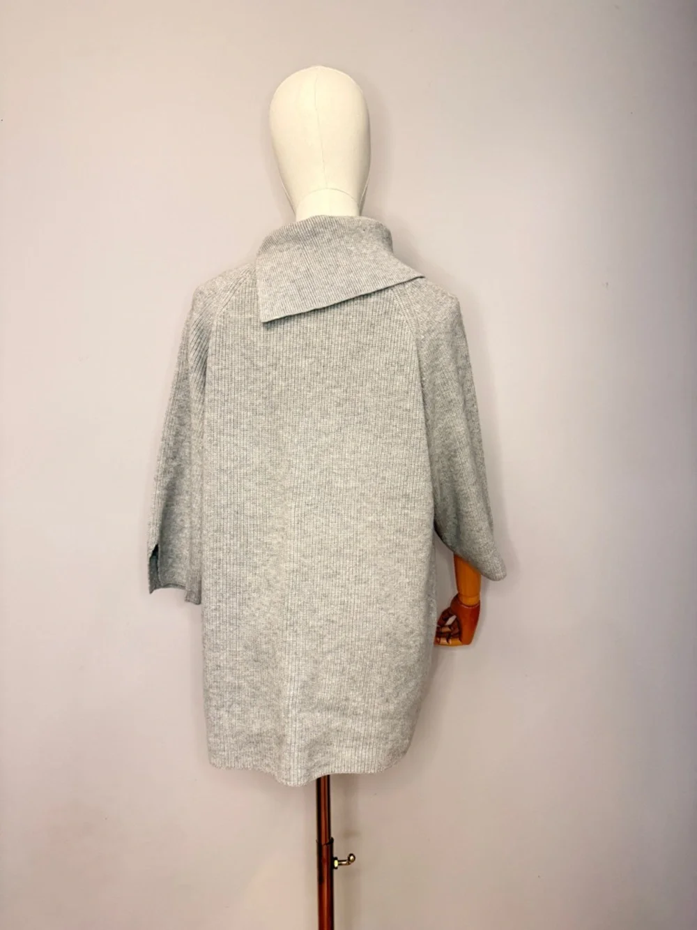 This is the iconic COS architectural ribbed sweater. It features a structured, oversized funnel neck (turtleneck) that holds its shape beautifully. Designed with a relaxed, boxy fit, dropped shoulders, and modern side slits at the hem. Perfect for a minimalist, "Quiet Luxury" aesthetic.
