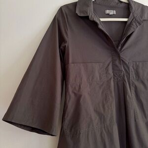 COS Oversized Poplin Puff Sleeve Minimalist Button Shirt Dress Dark Gray Size 8