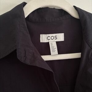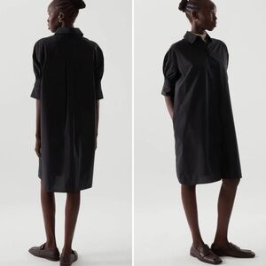 COS Oversized Shirt Dress Cotton Poplin Dark Navy Blue Black Size 2