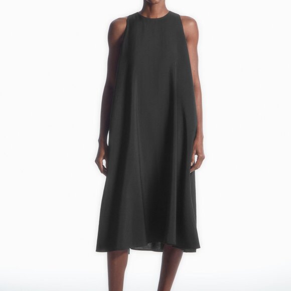 COS RACER-NECK SLEEVELESS SIDE-SEAM POCKETS MIDI BLACK MODAL-BLEND DRESS US 6
