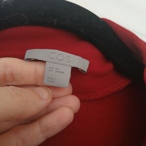 Elegant and stylish, this COS mini dress is perfect for any occasion. Purchased new about ten years ago and worn only a handful of times. It maintains its timeless appeal and elegant construction and tailoring COS is known for. Features pockets and front fold. The colour is between burgundy and red (cooler shade of red) and it is reflected most accurately in photo #1, 2. No visible flaws. Fabric is a viscose blend.