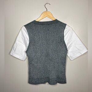 Like new no signs of obvious wear! Very cute and versatile for everyday and can be dressed up as well! Body: Nylon and Cotton and sleeves 100% Cotton. Nice and thick and excellent quality