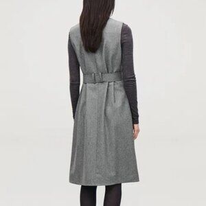 Dress made from a soft wool blend with a cotton lining. A straight fit with a waist belt.