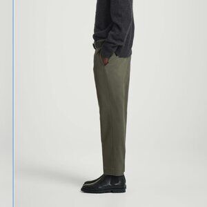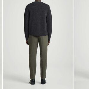 COS Slim-Fit Cotton Dark Khaki Pleated Minimalist Contemporary Trousers 48 (32R)