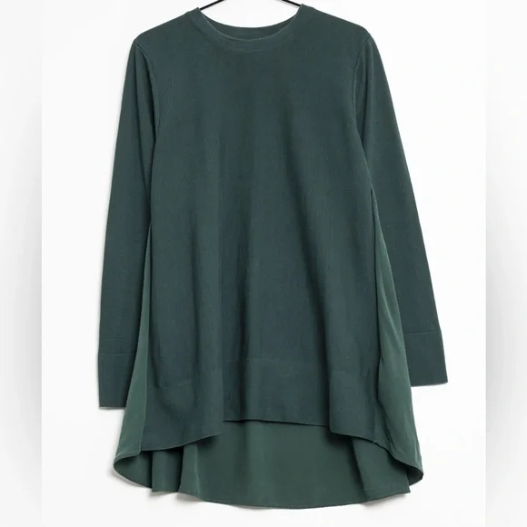 Knit: 100% Cotton. Woven: 100% Silk. A-line shape.