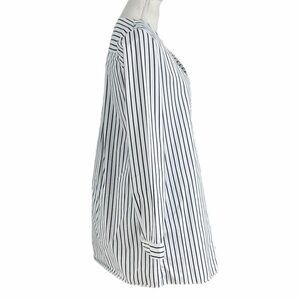 COS WHITE NAVY NAUTICAL STRIPED LONG SLEEVE V-NECK TUNIC BLOUSE - 2