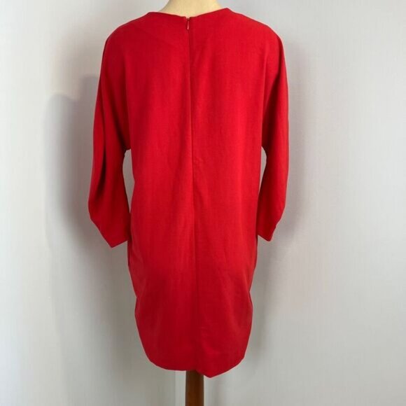 COS Womens 6 Bright Red Long 3/4 Sleeve Knee Length Sweater Dress Zipper Pockets
