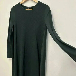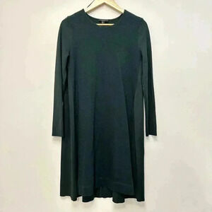 COS Wool Cotton Blend A-Line Long Sleeve Shift Jersey Dress Wool Panel Green M