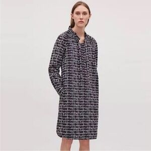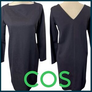 COS black long sleeve boxy style dress with silk overlay top tie back size M