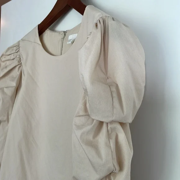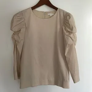 Cos blouse with ruching down the side of the sleeve. So cute and flattering on. Nice soft cotton in a creamy off white. Size small. Excellent condition, no flaws.