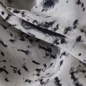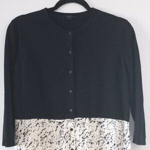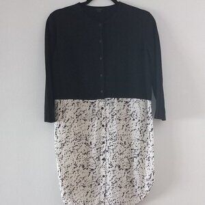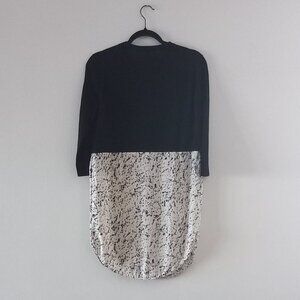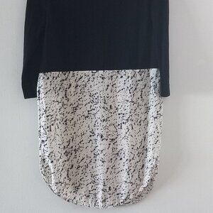 Thin sweater knit at the top, flowy printed fabric at the bottom