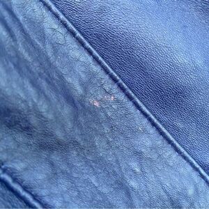 Gorgeous deep blue vintage leather jacket in a bomber style