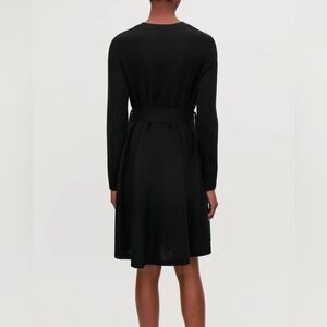 COS Minimalist A-Line Black 💯 Merino-Wool Knit Dress M Long Sleeves