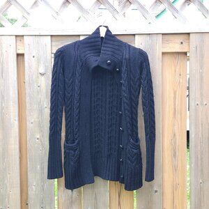 COSTA BLANCA KNIT Button Up Turtleneck Sweater Black Women's Size Small Cardigan