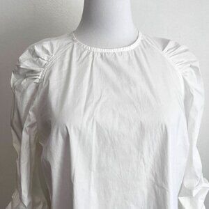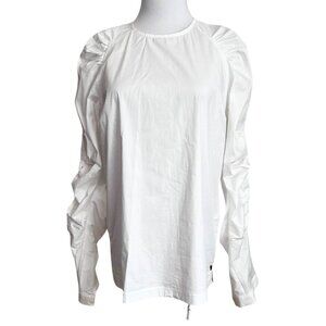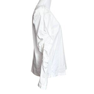 COSTER COPENHAGEN WHITE COTTON RUCHED LONG SLEEVE BLOUSE TOP STYLE 204-1431 - XS