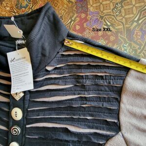 The zippered front is embellished with a gorgeous array of different bone buttons, which in itself is a talking point anywhere you go !