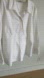 Crisp white shirt by Cotton Ginny. Pre-shrunk 98% cotton/2% spandex blend. A white striped pattern is woven into the fabric.  Long sleeve button front.  Roll up cuff for French cuff look.  Bust darts and centre back seam. Machine washed, hung to dry. Some sheerness.