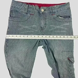 COTTON GINNY ladies jean capri size 9 - blue and white striped