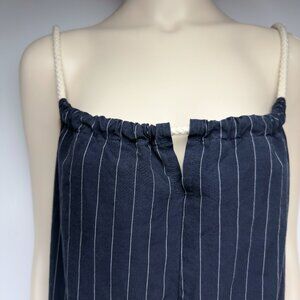 COTTON Sailor Oversized Straight Navy Blue White Striped Ropes Jumpsuit sz S / M