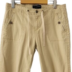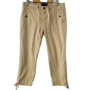 COTTON Textured Khaki Capris Cropped Trousers Lady Hathaway Drawstring SZ 8