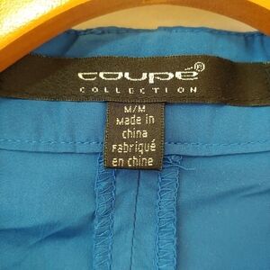 This is fabulous gently used blue lightweight jacket by Coupe Collection. Super unique, fun and flattering item, ideal for spring or fall. Also great for summer evening.