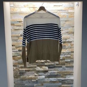 Crisp stripes and blocks of color maximize the casual-cool vibes of this soft triblend sweater.