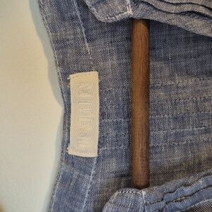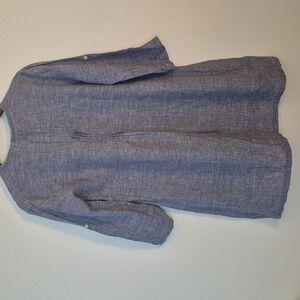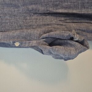 CP Shades 100% Linen Chambray Pintucked Mini Dress Sleeve Tabs V Neck