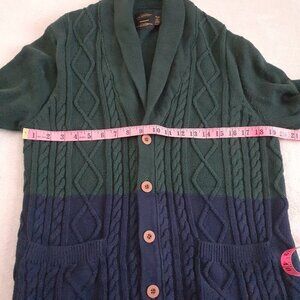 CPO Provisions Men's Size M Dark Green & Blue Cable Knit Button Down Cardigan
