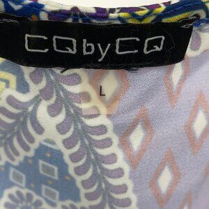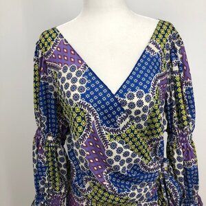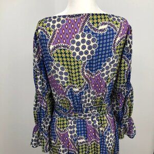 CQ by CQ multicolor geometric patchwork long sleeve ruffle Wrap Maxi dress Lg