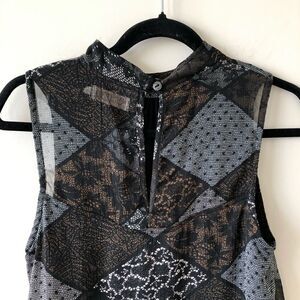 CREAM High Neckline Dark Floral Sleeveless Blouse