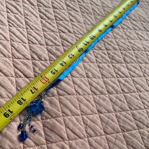 Silver-tone chain + vibrant blue ribbon