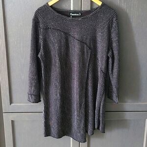 CREATION Striped Asymmetrical Hem 3/4 Sleeve Gray Tunic Top Size SM NWT