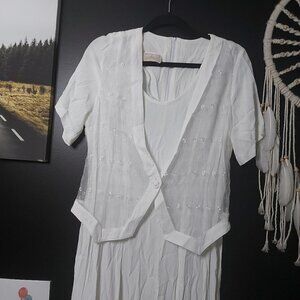 Crisp White Vintage Algo Short Sleeve Maxi Dress Sown in Mesh Embroidered Vest