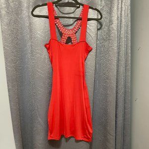 CRISTINA Tangerine Bright Orange Bodycon Wrap Mini Dress w Rhinestones - Sz M