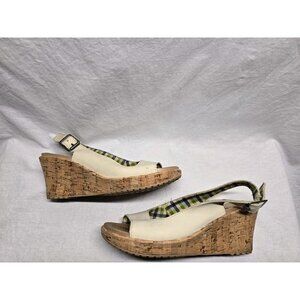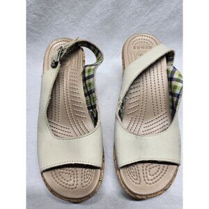 CROCS A-Leigh Beige Cork Wedge Sling Back Sandals Womens Size 7