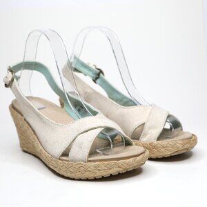 CROCS A-Leigh Slingback Espadrille Wedge Sandals Beige Cream Turquoise Shoes 7