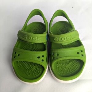 CROCS Baby Sandals Size 4 Green And White Waterproof Hoop And Loops
