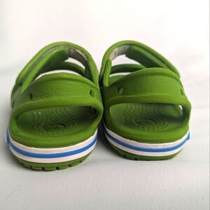 CROCS Baby Sandals Size 4 Green And White Waterproof Hoop And Loops