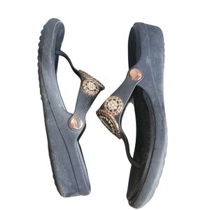 CROCS Black Sanrah Diamante Wedge Flip Sandal 8W