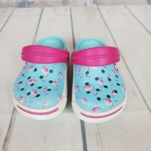 CROCS Crocband Clog Pale Turquoise Pink Flamingo Pattern Size Baby 4-5