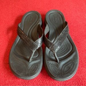 CROCS Sz 10 Toe Post Thong Sequin Comfort Flip Flops Sandals. From day to night. From beach to the dance floor. Take these super comfortable and stylish slip on sandals on your next vacation, get away or cruise.