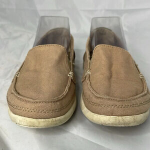 Women’s tan beige Crocs “Walu” Canvas Loafer / Deck / Boat Shoe.