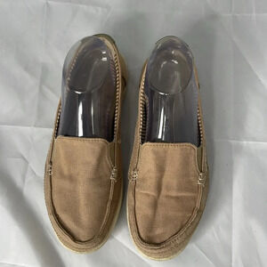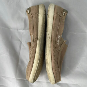 Women’s tan beige Crocs “Walu” Canvas Loafer / Deck / Boat Shoe.