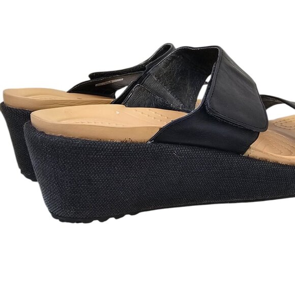 CROCS Womens A-Leigh 2 Strap Wedge Sandal, Leather, Black, Comfort, Canvas, 10