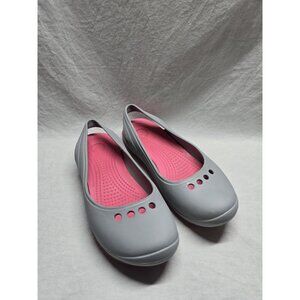CROCS Women's Tone Skylar 7US Gray/Pink Rubber Slip On Slingback Mary Jane Flat