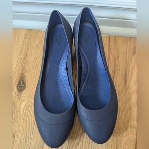 CROCS women Wedge Shoes Navy Blue Almond Tip Size 11