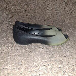 CROCS-Carlie-Ombre White-Black-Peep Toe Flats-Sz 6-Excellent
