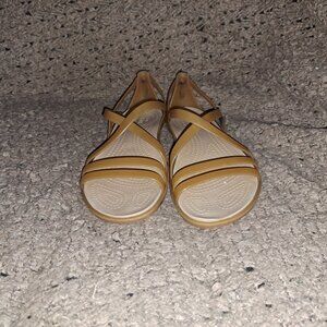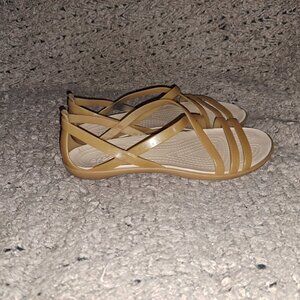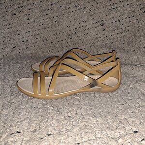 CROCS-Isabella Strappy Jelly Sandal-Gold-Sz 6-Excellent