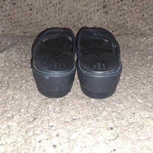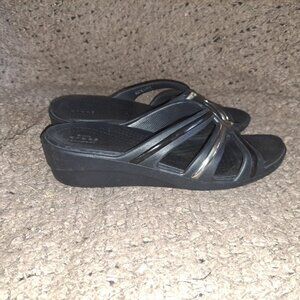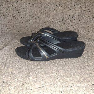 CROCS-Sanrah Metalblock Strappy Wedge Sandals-Black/Silver-Sz 10-NWOB