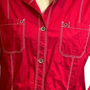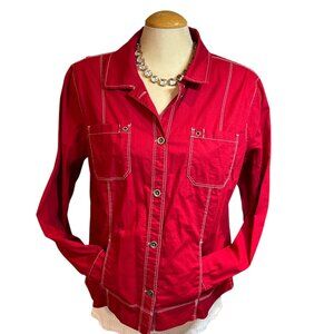 CROFT & BARROW Light Jacket Size Large Red With White Overstitching Stretch
